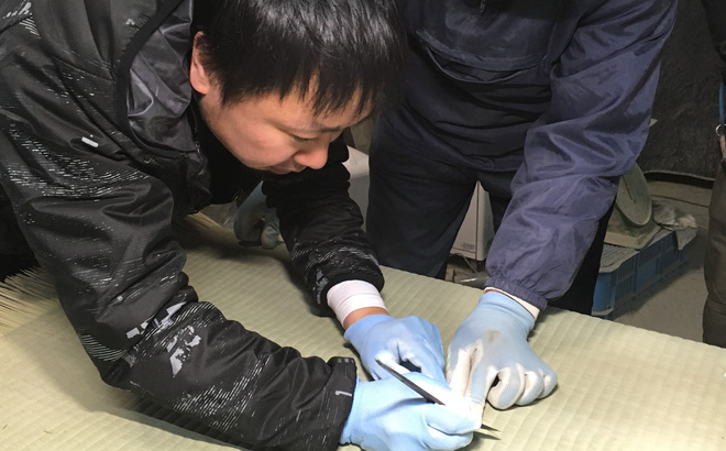 天然畳の良さはフローリングや化学表に比べ夏ではベタつかず、冬は温かみを残します。特に熊本産イ草は細くしなやかな肌触りも最高の逸品です。当店は熊本県の産地問屋、イ草農家様に足を運び、品質管理・製造視察・研修会等を行い、最高の品質を保っています。