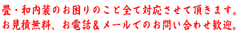 お客様安心をモットーに丁寧な仕事をご提供させて頂き、お客様方がご納得いくまでおつきあいさせて頂きたいと「大倉畳店」一同考えており、畳の枠にこだわらず、襖・壁から小物・インテリア一式までお客様の描く空間を実現する技術提供を考えております。